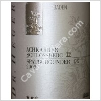 Dr Heger, Achkarrer Schlossberg Spätburgunder Grosses Gewächs Baden - rouge Weingut Dr Heger D-79241 Ihringen |